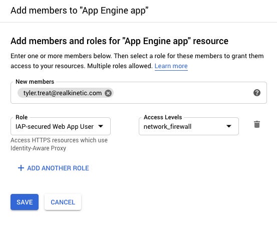 Luckily, there is a better solution — one that fits our serverless model and enables us to control external traffic while allowing App Engine services to securely communicate internally. IAP supports context-aware access, which allows enforcing granular access controls for web applications, VMs, and GCP APIs based on an end-user’s identity and request context. Essentially, context-aware access brings a richer zero-trust model to App Engine and other GCP services.