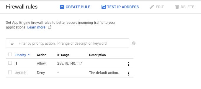 App Engine has firewall rules built in which allow you to secure incoming traffic to your application with allow/deny rules based on IP, so it seemed like an easy fix. The team would be in production in no time!
